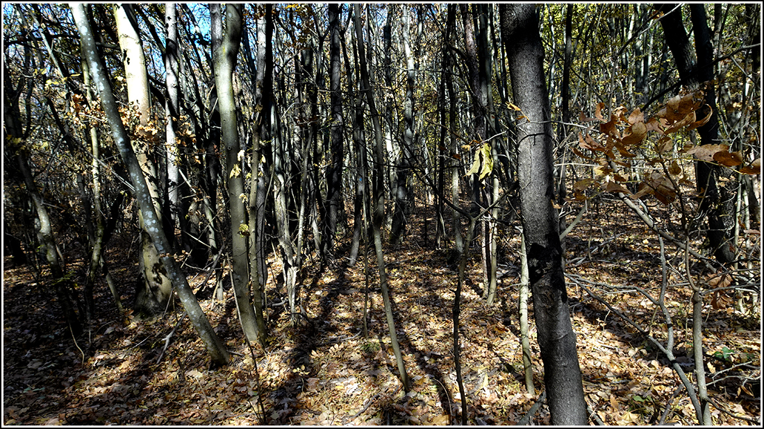 Már nem sárga az avar. Szürkébe játszó tompaokker.